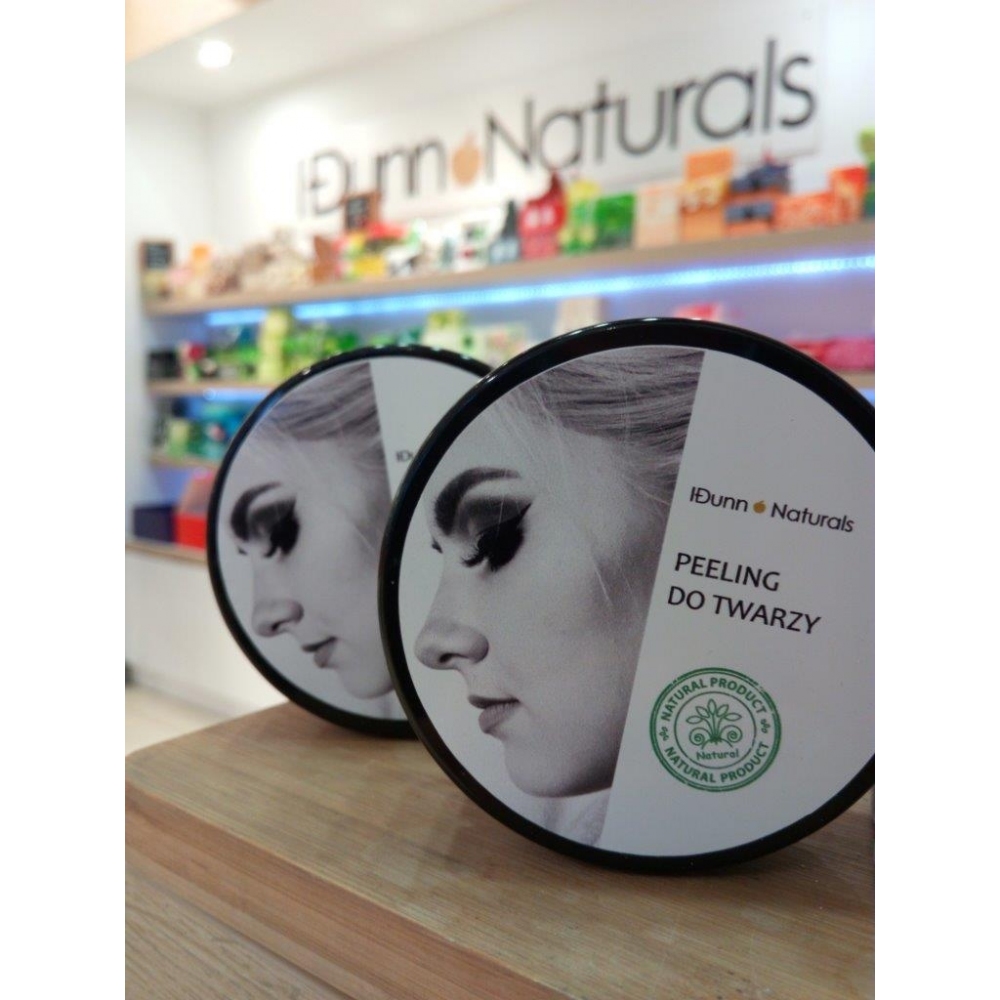 Delikatna kremowa maska – peeling z masłem shea, czerwoną glinką oraz z peelingującymi drobinkami korundu i węglanu wapnia. Forma maski, dzięki dużej zawartości masła shea, w pierwszym etapie zapewnia nawilżenie i natłuszczenie skóry oraz przygotowuje ją do drugiego etapu czyli mechanicznego peelingu. Korund skutecznie usuwa zrogowaciały naskórek, masując skórę, pobudza ją do odnowy. Węglan wapnia adsorbuje nadmiar sebum przez co skóra jest odświeżona. Czerwona glinka jest bogata m.in. w żelazo i krzem, zapobiega pękaniu naczynek krwionośnych