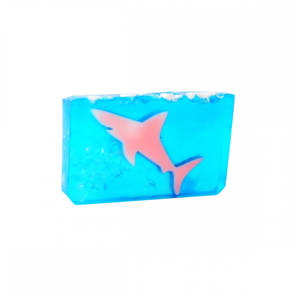 Mydło gliecrynowe, wykonane ręcznie z zatopionym motywem w formie rekina dwukolorowego.