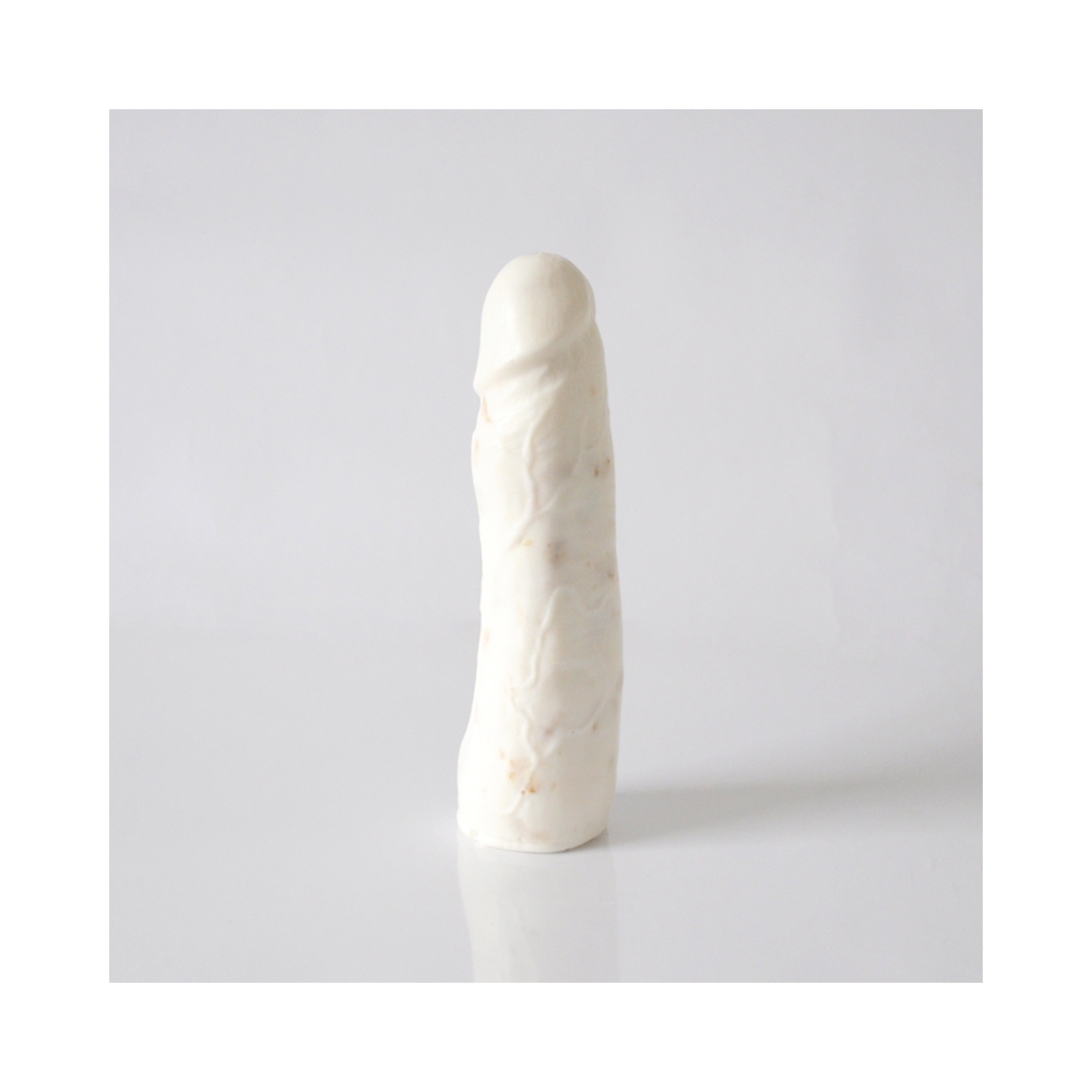 Mydło glicerynowe, wykonane ręcznie w formie penisa bialy z płatkami